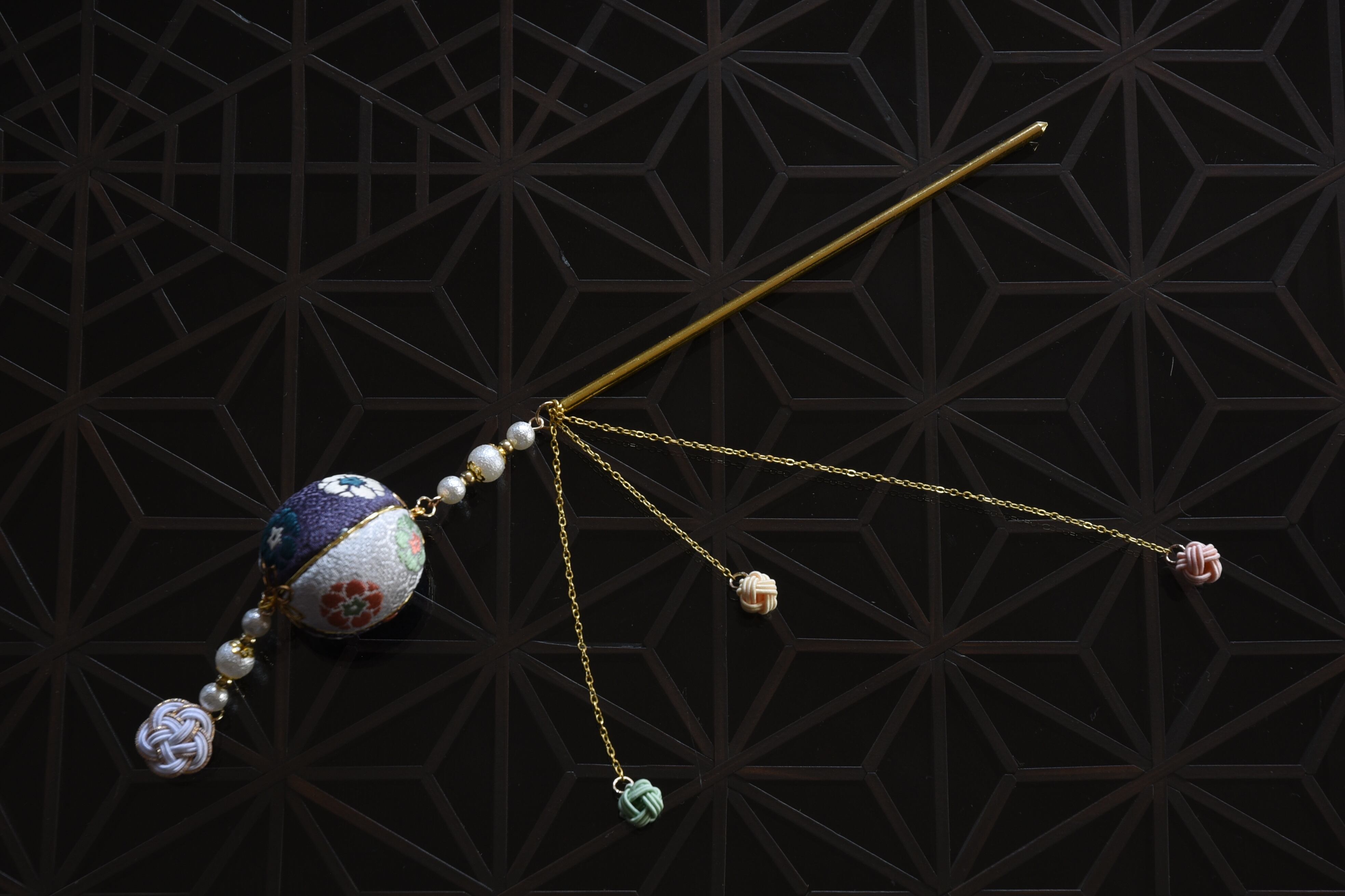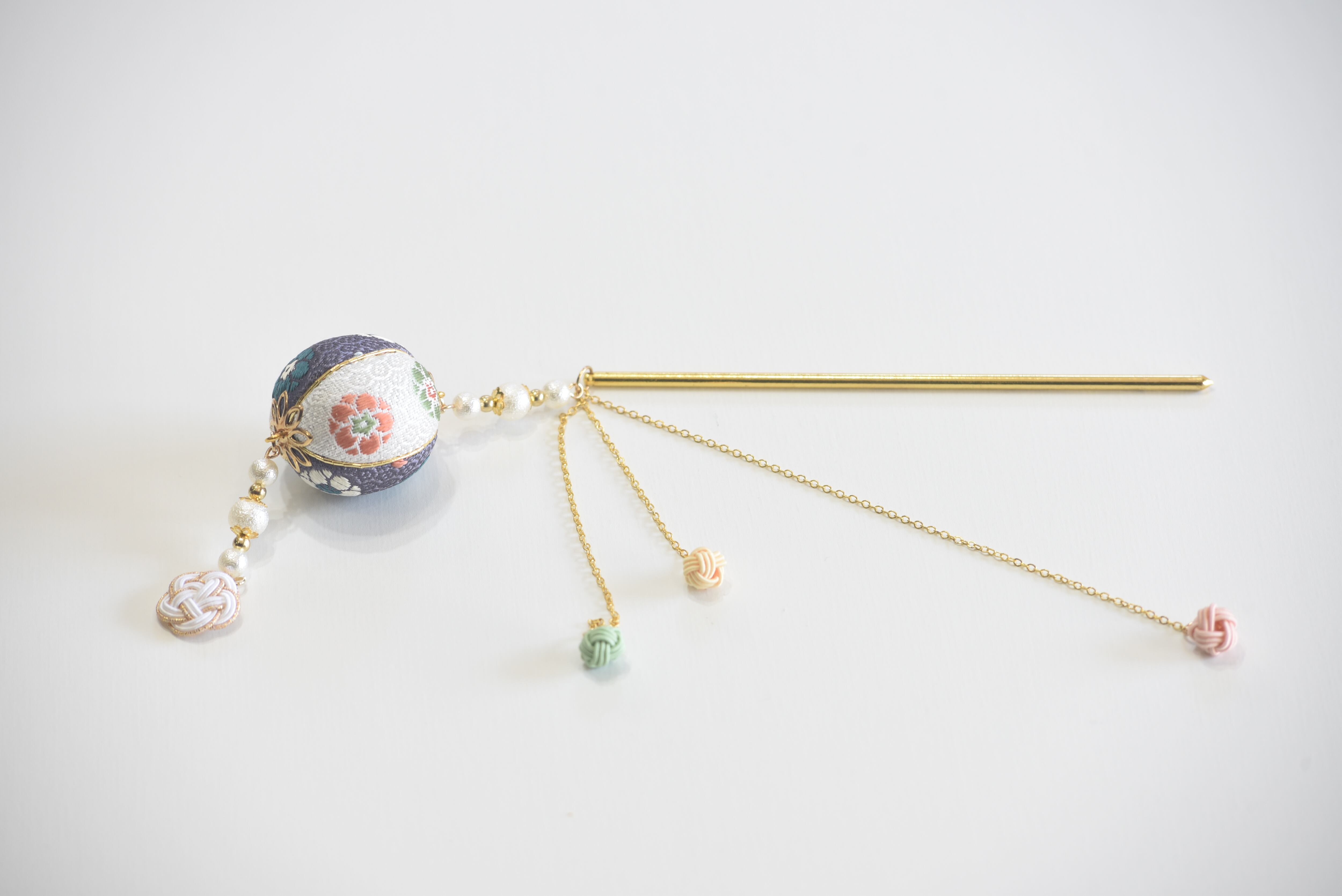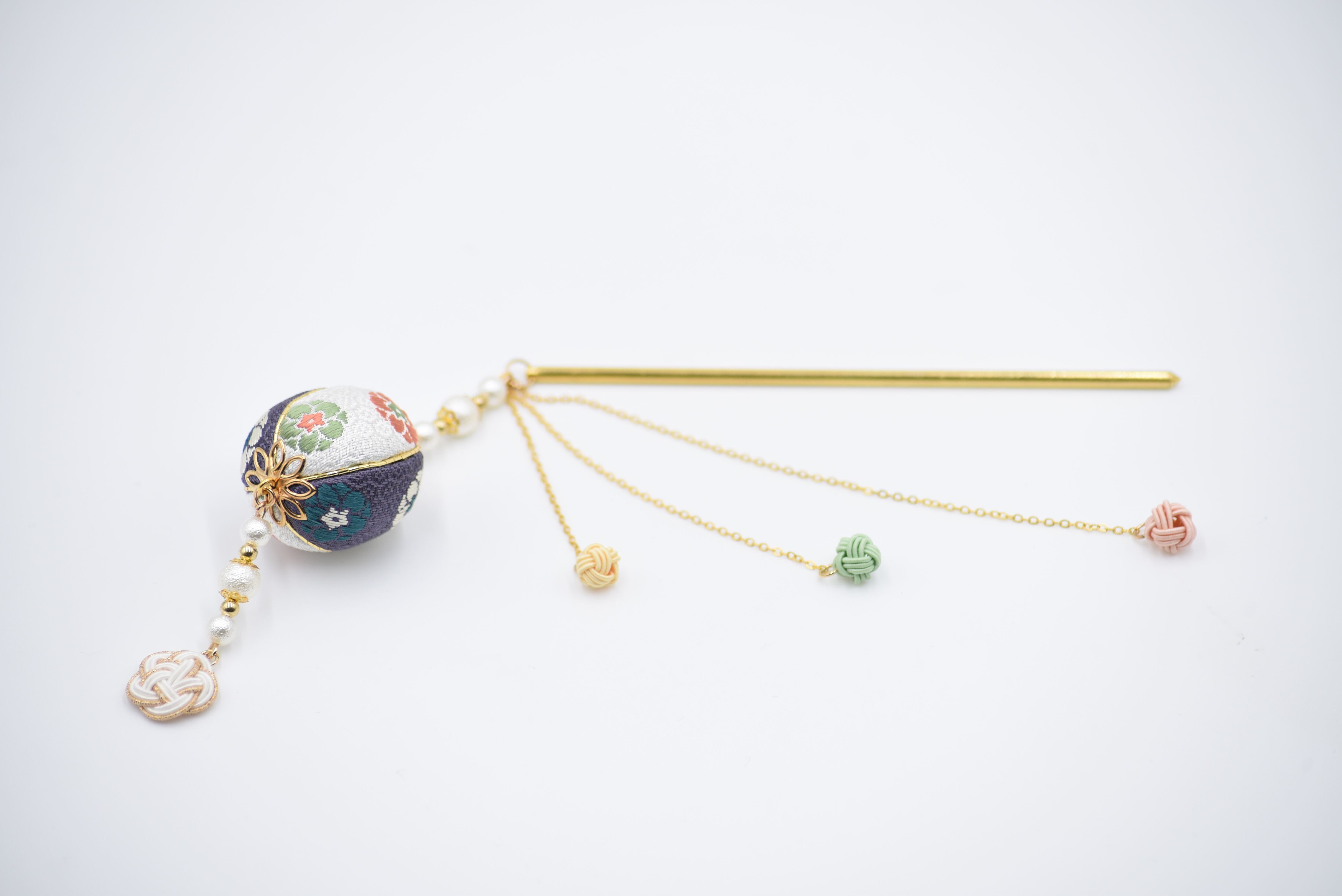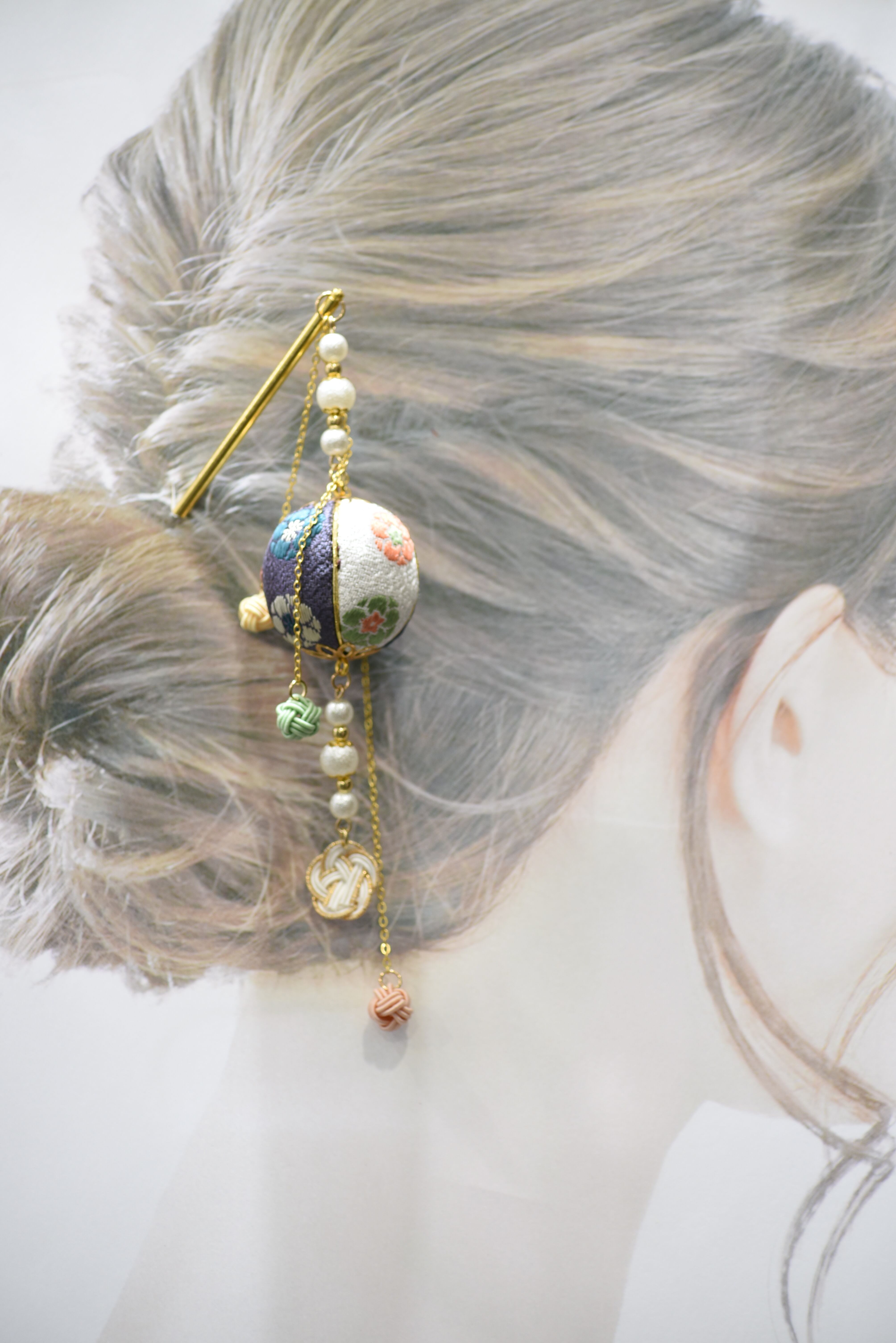 歩くたびにふんわりと揺れる3色の水引は、良縁や幸福を象徴し、身につける人の魅力を引き立てる。