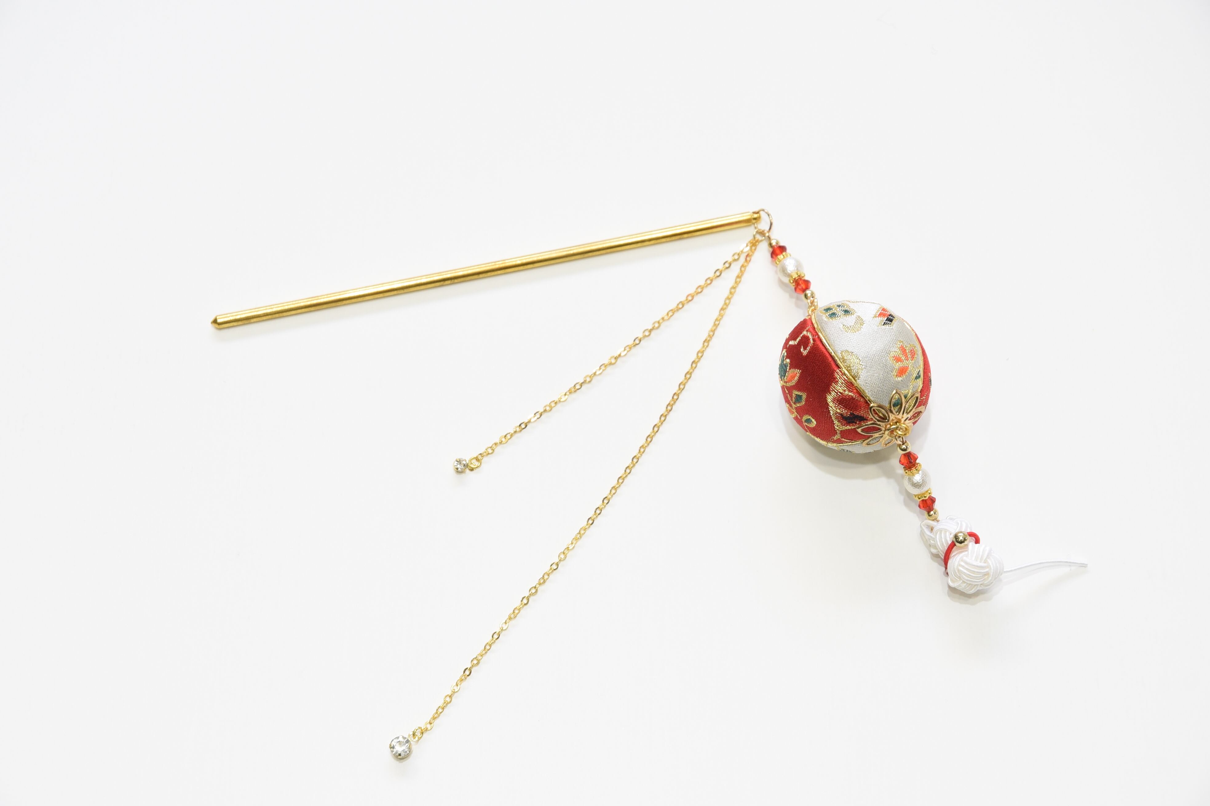簪 紅白 白猫